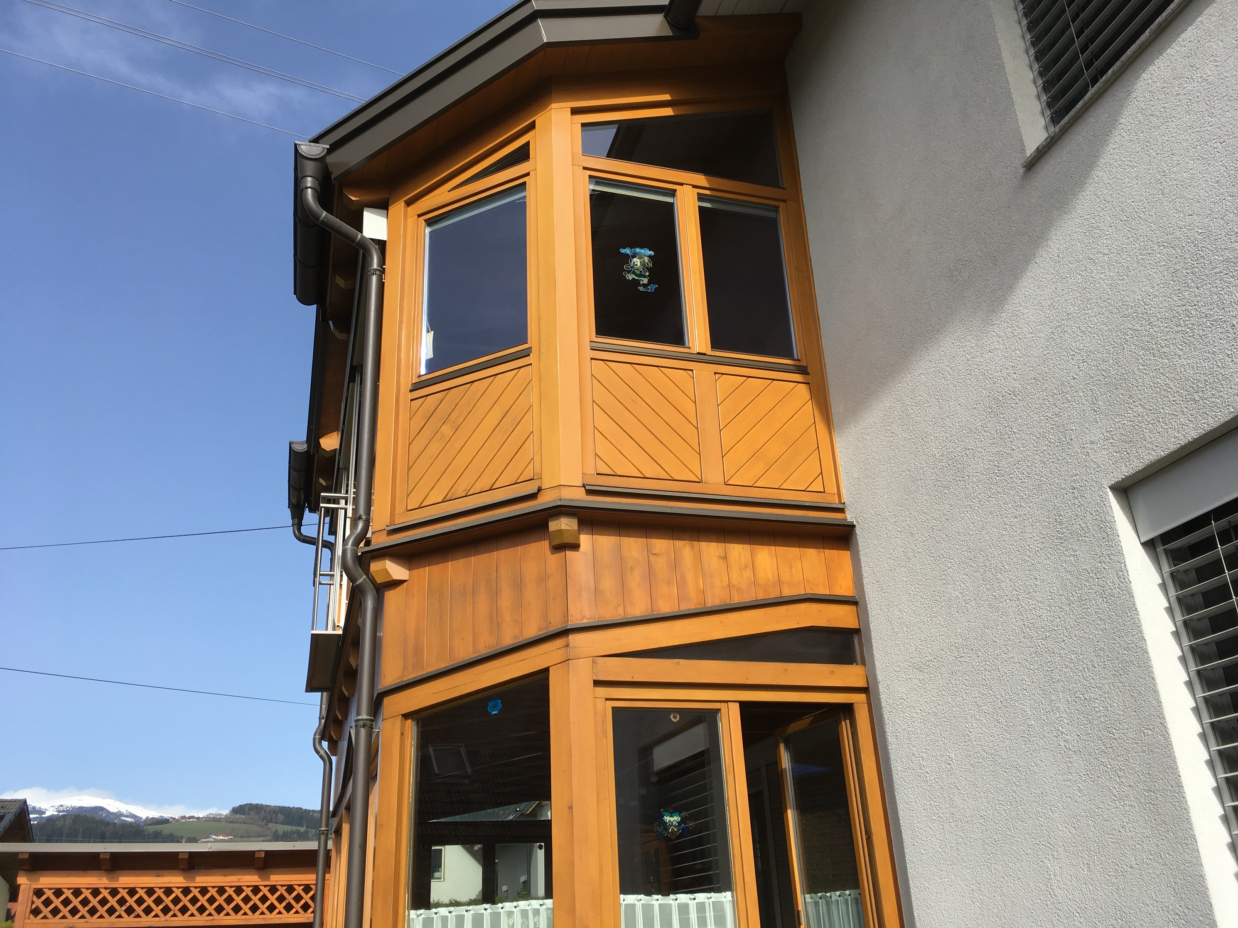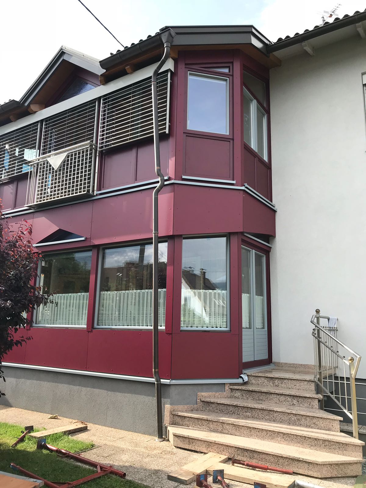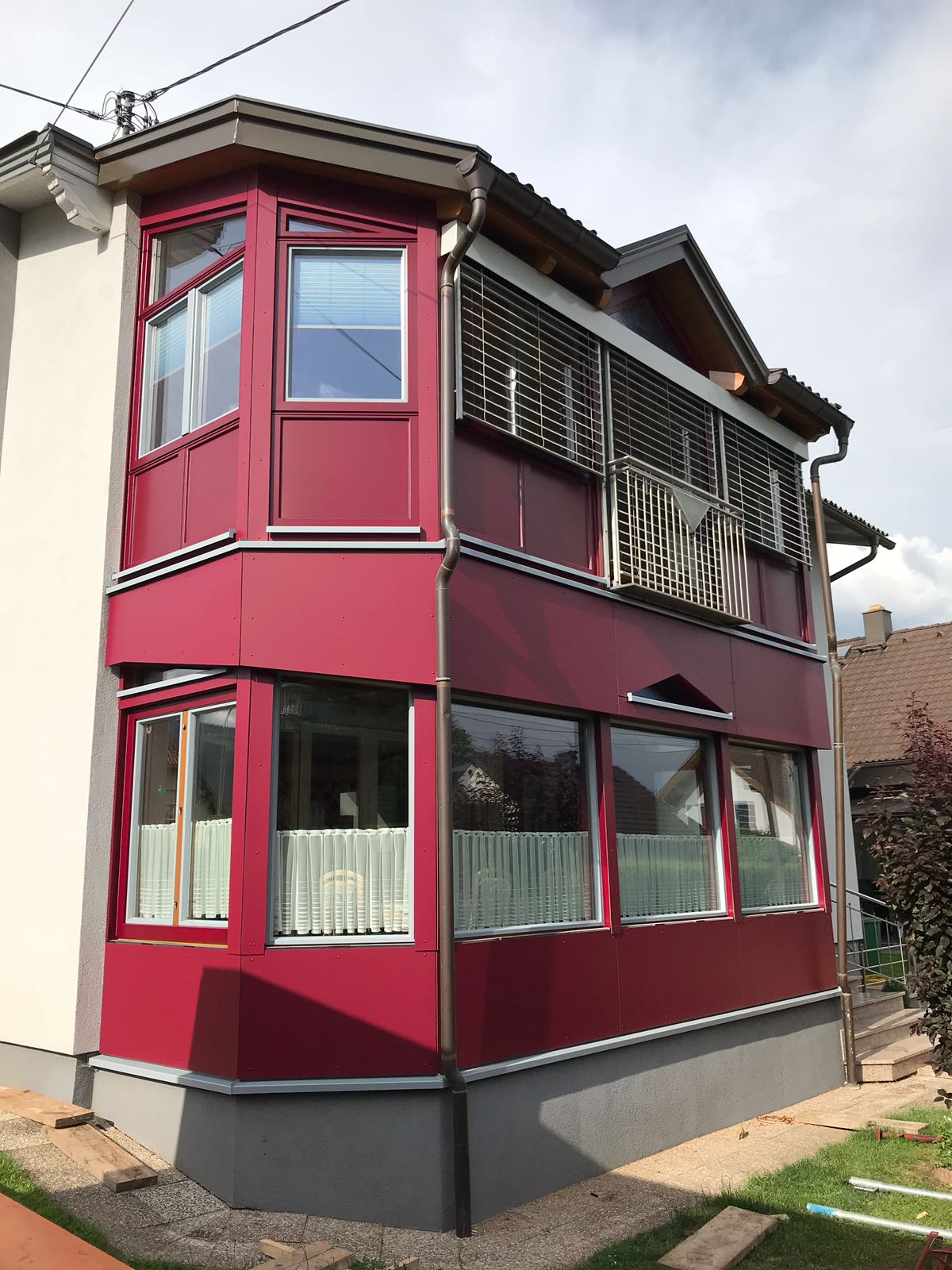 Projektbeschreibung: Verkleidung des bestehenden Wintergarten mit Compact MAX Exterior Platten.