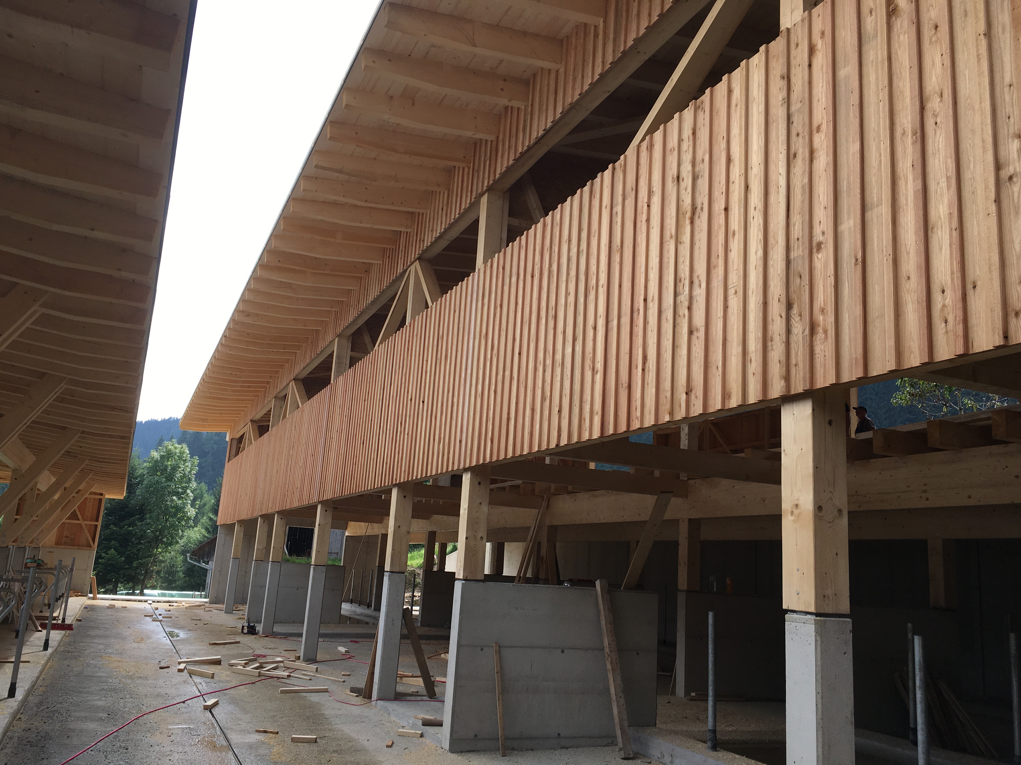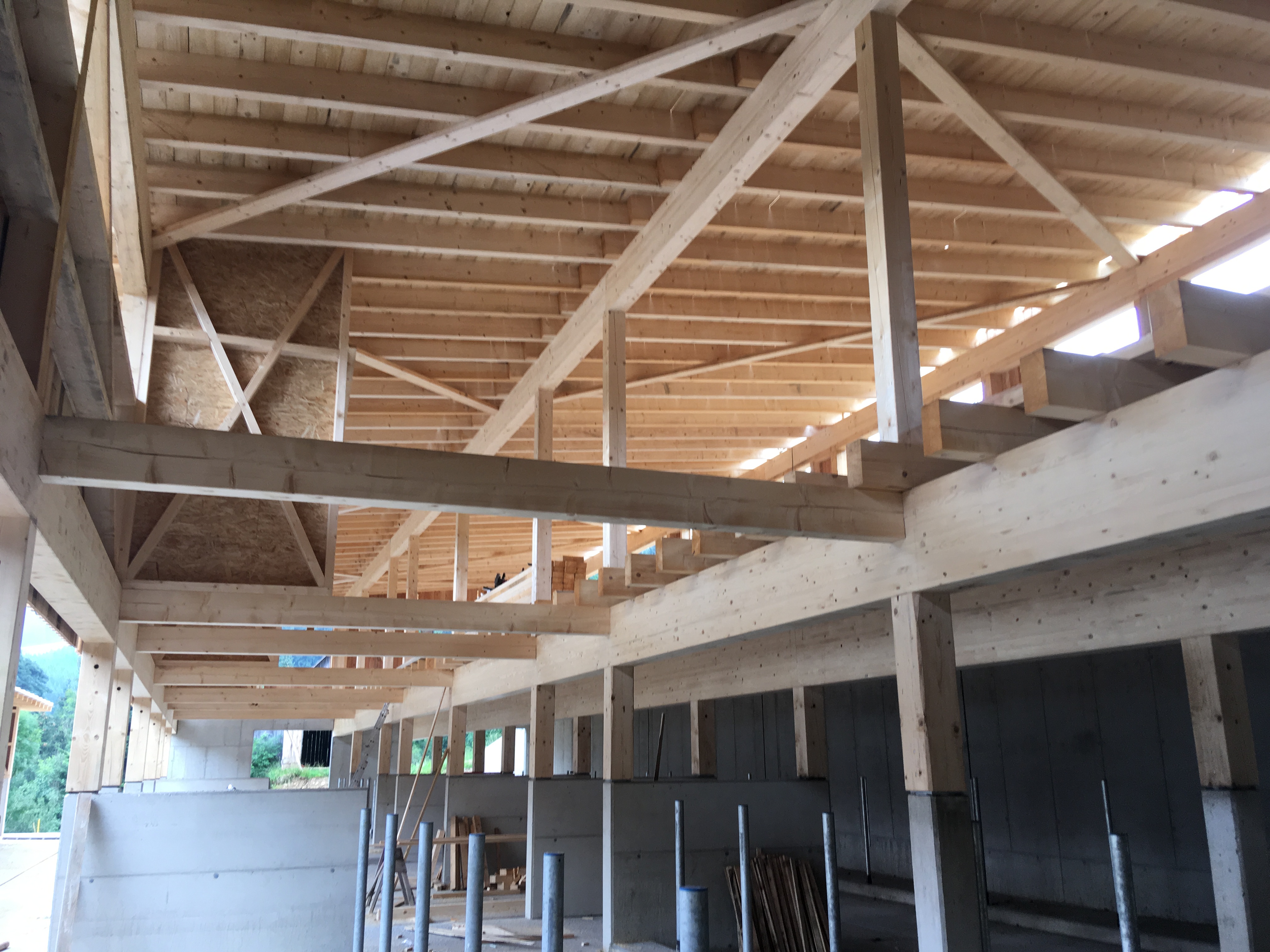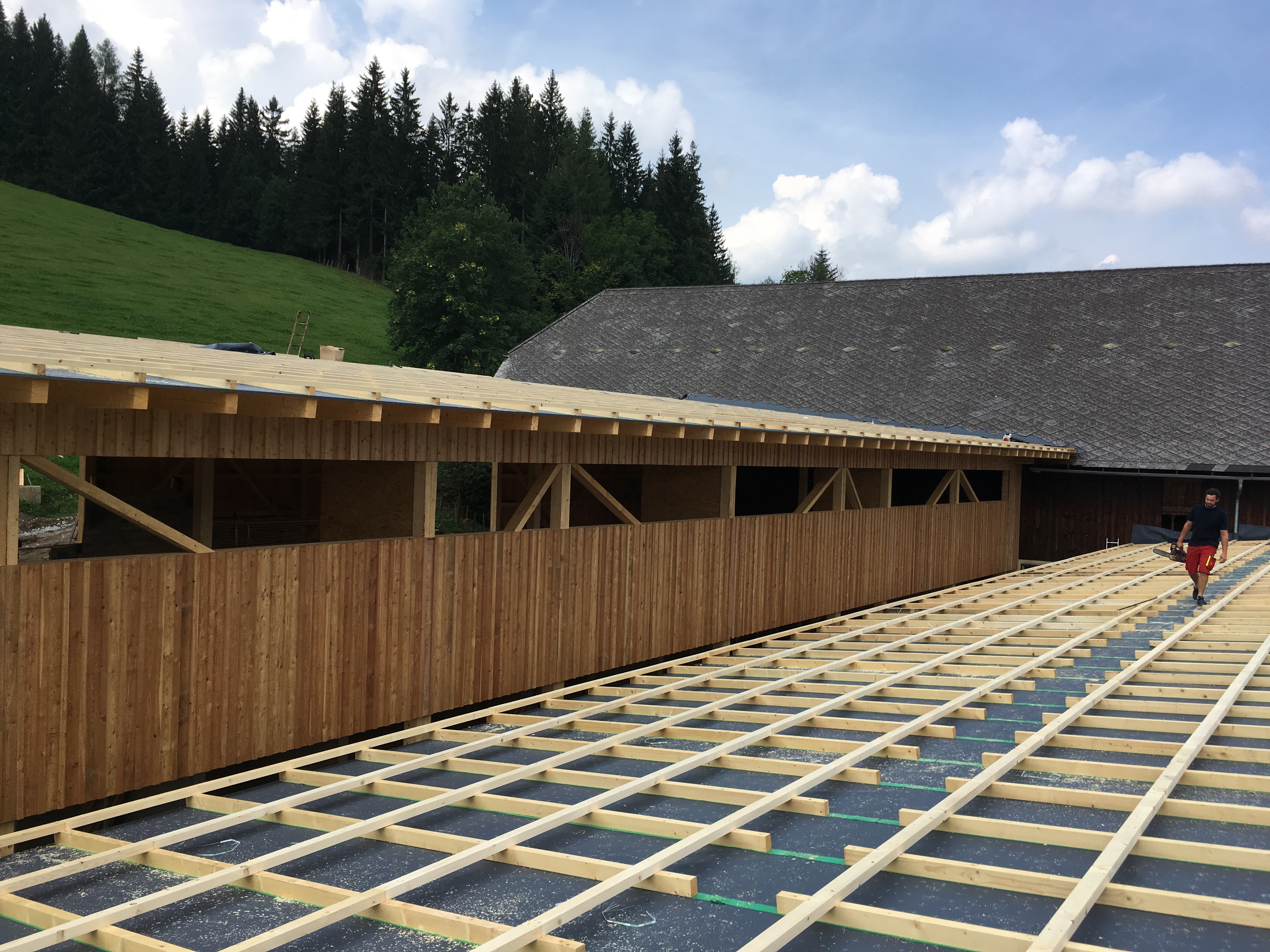 Projektbeschreibung: Errichtung eines neuen Freiluftstalles in Pack / Hirschegg mit einer Dachfläche von ca. 1000 m². Gesamtholzmenge ca. 150 m³.