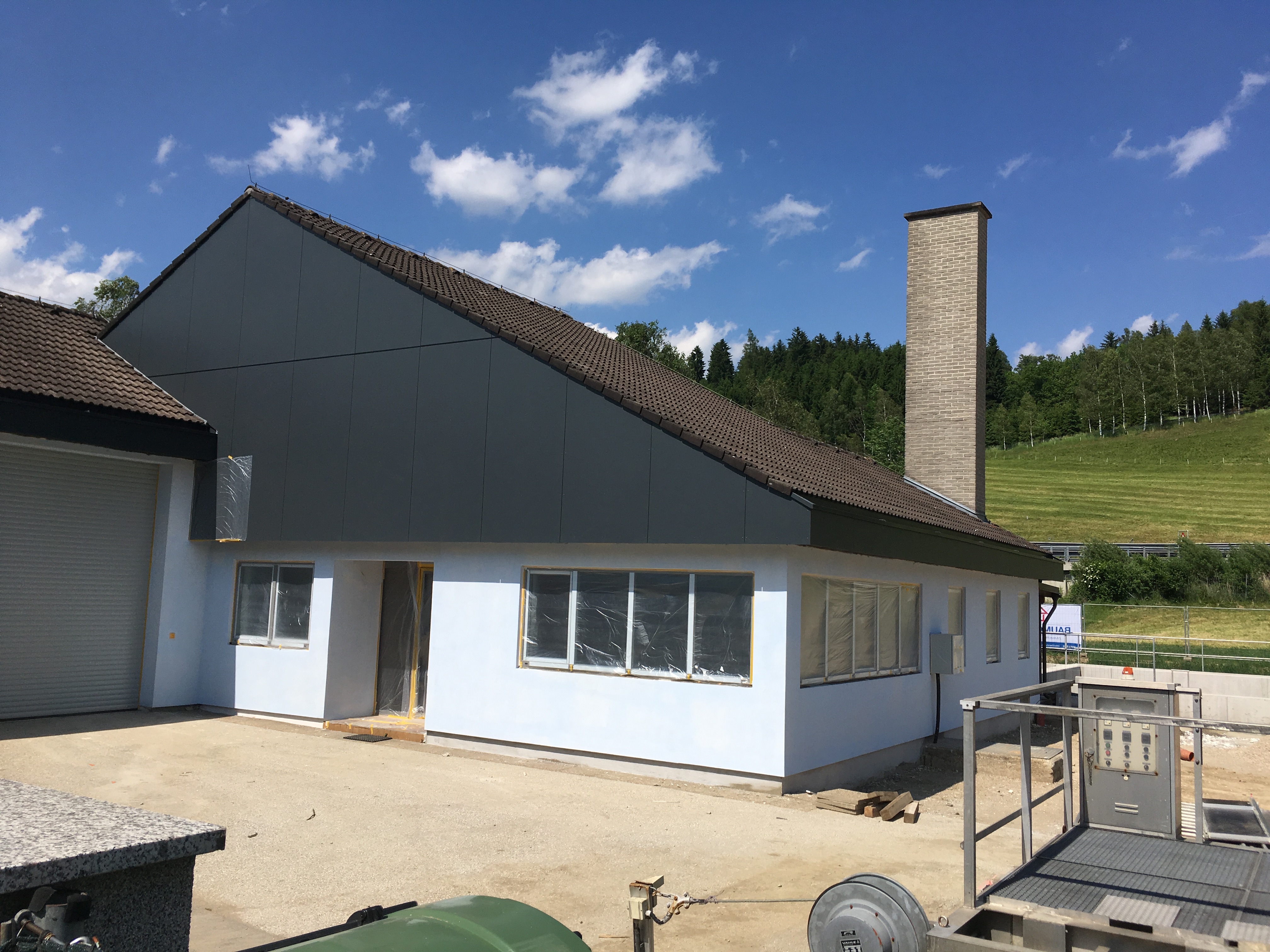 Projektbeschreibung: Demontage und Entsorgung der alten Holzfassade sowie herstellen einer neuen MAX Fassade inkl. UK sowie Lieferung einer Schaltschrankeinhausung.